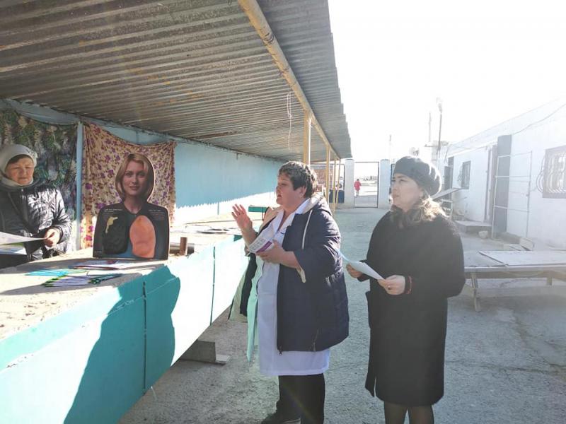 Дүниежүзілік туберкулезге қарсы күніне орай Аудандық аурухана фтизиатр дәрігері Б.С.Дюсенова, Қарақия аудандық қоғамдық денсаулық сақтау басқармасының бөлім басшысы Ж.Сейдахметова және емхана психологы А.Киякова тұрғындар арасында ақпараттық ағарту материалдарын таратып, түсінік жұмыстарын жүргізді.