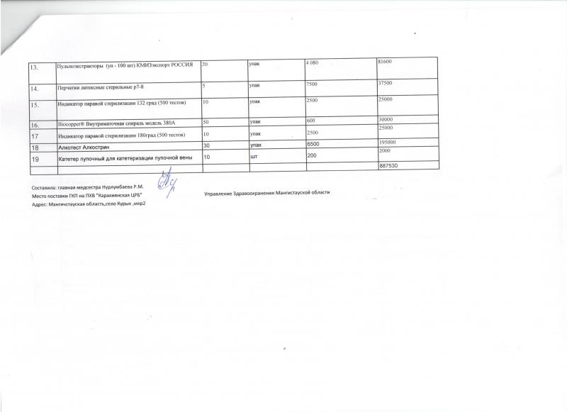 Объявление о проведении закупа способом запроса ценовых предложений по закупу изделий медицинского назначения (19 лота)